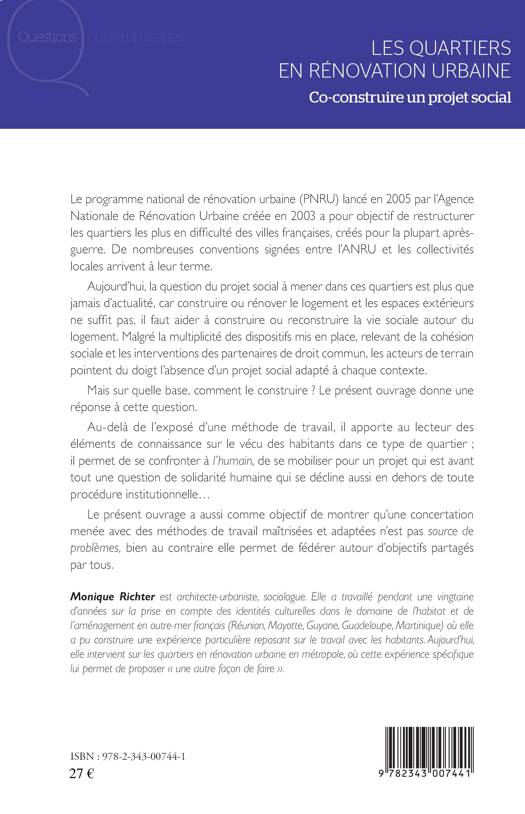 Le programme national de rénovation urbaine (PNRU) a été lancé en 2005. Aujourd'hui, la question du projet social à mener dans ces quartiers est plus que jamais d'actualité, car construire ou rénover le logement et les espaces extérieurs ne suffit pas, il faut aider à construire ou reconstruire la vie sociale autour du logement. Les acteurs de terrain pointent du doigt l'absence d'un projet social adapté à chaque contexte. Cet ouvrage tente de donner des pistes.