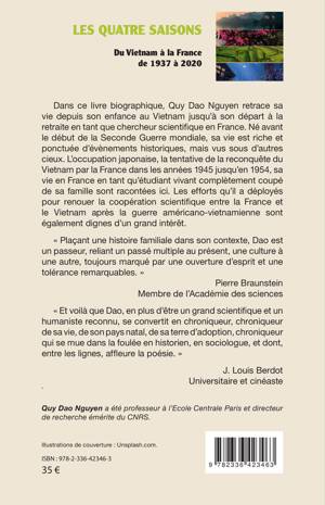 Dans ce livre biographique, Quy Dao Nguyen retrace sa vie depuis son enfance au Vietnam jusqu'à son départ à la retraite en tant que chercheur scientifique en France. Né avant le début de la Seconde Guerre mondiale, sa vie est riche et ponctuée d'évènements historiques, mais vus sous d'autres cieux. L'occupation japonaise, la tentative de la reconquête du Vietnam par la France dans les années 1945 jusqu'en 1954, sa vie en France en tant qu'étudiant vivant complètement coupé de sa famille sont racontées ici. Les efforts qu'il a déployés pour renouer la coopération scientifique entre la France et le Vietnam après la guerre américano-vietnamienne sont également dignes d'un grand intérêt.