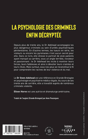 Depuis plus de trente ans, le Dr Adshead accompagne les plus dangereux criminels au sein d’unités psychiatriques pénitentiaires. En d’autres termes, les tueurs en série, les violeurs ou encore les pyromanes n’ont aucun secret pour elle.
