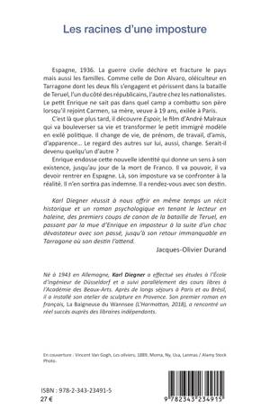 Espagne, 1936. La guerre civile déchire et fracture le pays mais aussi les familles. Comme celle de Don Alvaro, oléiculteur en Tarragone dont les deux fils s’engagent et périssent dans la bataille de Teruel, l’un du côté des républicains, l’autre chez les nationalistes. Le petit Enrique ne sait pas dans quel camp a combattu son père lorsqu’il rejoint Carmen, sa mère, veuve à 19 ans, exilée à Paris. C’est là que plus tard, il découvre Espoir, le film d’André Malraux qui va bouleverser sa vie et transformer le petit immigré modèle en exilé politique. Il change de vie, de prénom, de travail, d’amis, d’apparence... Le regard des autres sur lui, aussi, change. Serait-il devenu quelqu’un d’autre ? Enrique endosse cette nouvelle identité qui donne un sens à son existence, jusqu’au jour de la mort de Franco. Il va pouvoir, il va devoir rentrer en Espagne. Là, son imposture va se confronter à la réalité. Il n’en sortira pas indemne. Il a rendez-vous avec son destin.