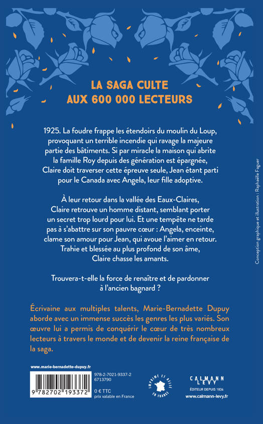 1925. La foudre frappe les étendoirs du moulin du Loup, provoquant un terrible incendie qui ravage la majeure partie des bâtiments. Si par miracle la maison qui abrite la famille Roy depuis des génération est épargnée, Claire doit traverser cette épreuve seule, Jean étant parti pour le Canada avec Angela, leur fille adoptive.