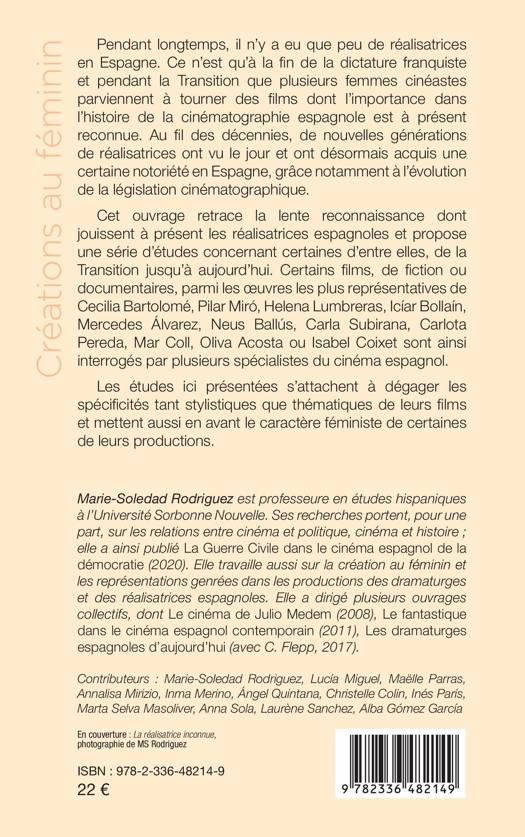 Pendant longtemps, il n'y a eu que peu de réalisatrices en Espagne. Ce n'est qu'à la fin de la dictature franquiste et pendant la Transition que plusieurs femmes cinéastes parviennent à tourner des films dont l'importance dans l'histoire de la cinématographie espagnole est à présent reconnue. Au fil des décennies, de nouvelles générations de réalisatrices ont vu le jour et ont désormais acquis une certaine notoriété en Espagne, grâce notamment à l'évolution de la législation cinématographique. Cet ouvrage retrace la lente reconnaissance dont jouissent à présent les réalisatrices espagnoles et propose une série d'études concernant certaines d'entre elles, de la Transition jusqu'à aujourd'hui. Certains films, de fiction ou documentaires, parmi les oeuvres les plus représentatives de Cecilia Bartolomé, Pilar Miró, Helena Lumbreras, Icíar Bollaín, Mercedes Álvarez, Neus Ballús, Carla Subirana, Carlota Pereda, Mar Coll, Oliva Acosta ou Isabel Coixet sont ainsi interrogés par plusieurs spécialistes du cinéma espagnol. Les études ici présentées s'attachent à dégager les spécificités tant stylistiques que thématiques de leurs films et mettent aussi en avant le caractère féministe de certaines de leurs productions.