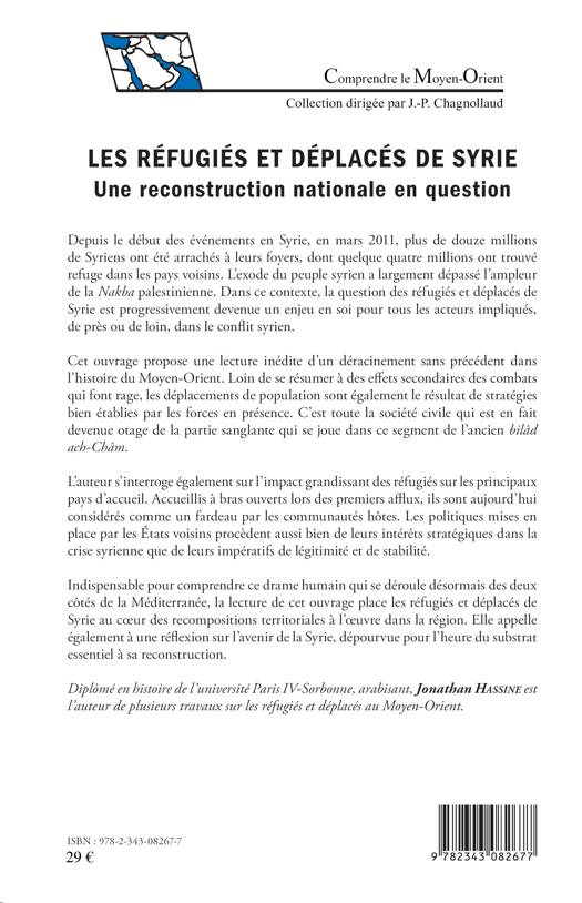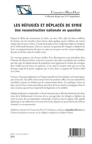 Avec plus de douze millions de Syriens arrachés à leurs foyers depuis mars 2011, la question des réfugiés et déplacés de Syrie est progressivement devenue un enjeu en soi pour tous les acteurs impliqués dans le conflit syrien. L'ouvrage propose une lecture inédite d'un déracinement sans précédent dans l'histoire du Moyen-Orient, résultat de stratégies des forces en présence. Il appelle également à une réflexion sur l'avenir du pays, dépourvue pour l'heure du substrat essentiel à sa reconstruction.