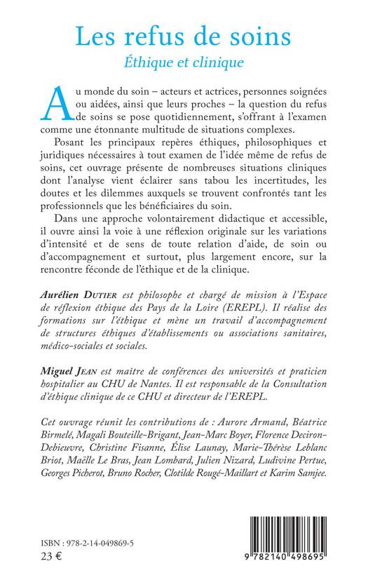 Au monde du soin – acteurs et actrices, personnes soignées ou aidées, ainsi que leurs proches – la question du refus de soins se pose quotidiennement, s’offrant à l’examen comme une étonnante multitude de situations complexes. Posant les principaux repères éthiques, philosophiques et juridiques nécessaires à tout examen de l’idée même de refus de soins, cet ouvrage présente de nombreuses situations cliniques dont l’analyse vient éclairer sans tabou les incertitudes, les doutes et les dilemmes auxquels se trouvent confrontés tant les professionnels que les bénéficiaires du soin. Dans une approche volontairement didactique et accessible, il ouvre ainsi la voie à une réflexion originale sur les variations d’intensité et de sens de toute relation d’aide, de soin ou d’accompagnement et surtout, plus largement encore, sur la rencontre féconde de l’éthique et de la clinique.