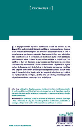 La Belgique connaît depuis de nombreuses années des tensions ou des conflits, qui sont généralement qualifiés de communautaires. Au cur de ces relations s'entrechoquent une multitude de représentations au sein et entre les deux grandes communautés, véhiculées par des discours politiques, médiatiques et citoyens. Réunissant des linguistes et des politologues, l'objectif de ce livre est d'explorer ce qui se cache derrière les mots pour mieux comprendre les relations communautaires en Belgique.