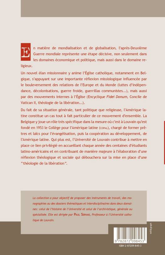 En matière de mondialisation et de globalisation, l'après-Deuxième Guerre mondiale représente une étape décisive, non seulement dans les domaines économique et politique, mais aussi dans le domaine religieux. Un nouvel élan missionnaire y anime l'Eglise catholique, notamment en Belgique, s'appuyant sur une importante réflexion missiologique influencée par le bouleversement des relations de l'Europe et du Monde