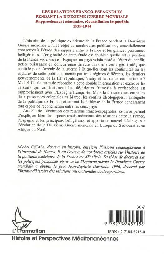 Au-delà de l'évolution des relations franco-espagnoles, ce livre permet d'expliquer des aspects méconnus des relations entre la France, l'Espagne et les principaux belligérants, et apporte un nouvel éclairage sur l'évolution de la Deuxième Guerre mondiale en Europe du Sud-Ouest et en Afrique du Nord.