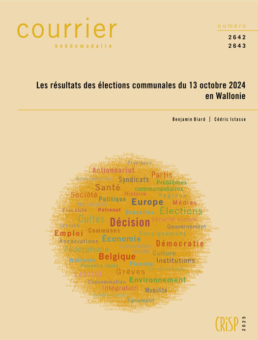 Le 13 octobre 2024, les élections pour le renouvellement des conseils communaux se sont tenues sur tout le territoire belge. Ce Courrier hebdomadaire analyse les résultats de ce scrutin s’agissant de la Wallonie. Il distingue les 252 communes de la région de langue française (Wallonie francophone) et les 9 communes de la région de langue allemande (Communauté germanophone). En effet, ces deux régions linguistiques diffèrent quant aux législations qui y sont en vigueur et aux réalités politiques qui y prévalent. Après avoir rappelé les forces politiques en présence et s’être intéressé au taux de participation au scrutin, l’exposé étudie les résultats par province et par arrondissement : des tableaux présentent, pour les trois dernières élections (2012-2024), la liste arrivée en tête dans chaque commune et précisent si cette liste a obtenu une majorité absolue (des suffrages ou des sièges uniquement). Une attention particulière est réservée à la situation des communes de plus de 20 000 habitants et, spécialement, aux neuf villes les plus peuplées : Charleroi, La Louvière, Liège, Mons, Mouscron, Namur, Seraing, Tournai et Verviers. L’examen procède aussi de manière thématique, en se penchant notamment sur les tendances majoritaires, sur l’appartenance politique des élus et sur la proportion de femmes parmi les élus. Les performances électorales des principaux partis politiques sont appréhendées d’un point de vue global. Le nombre de sièges obtenus et les positions de force sont recensés. Cette étude montre que, en 2024, le parti présentant l’ancrage local le plus fort reste le PS, suivi du MR. En revanche, Les Engagés (ex-CDH) dépassent désormais Écolo. Vient ensuite le PTB. Les analyses sont appuyées par des cartes figurant les zones d’implantation de ces cinq partis.