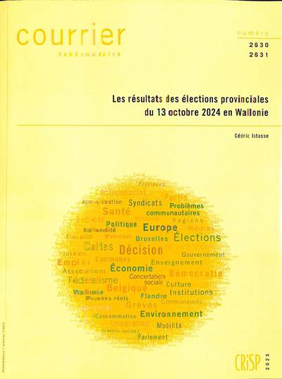 Le 13 octobre 2024 a eu lieu, pour la sixième fois, l’élection des cinq conseils provinciaux de Wallonie. Par rapport à celui qui s’était tenu six ans plus tôt, ce scrutin a été marqué, dans des proportions différentes, par la hausse des scores du MR, des Engagés et du PTB et par la baisse de ceux du PS, d’Écolo et de Défi. Ce Courrier hebdomadaire commence par examiner les taux de participation et d’abstention. Ensuite, il se penche de manière distincte sur chacune des provinces wallonnes. Successivement, il présente les résultats et le nombre de sièges obtenus par les différentes listes en présence, procède à une comparaison avec les résultats des élections provinciales de 2018, et propose une analyse par district des résultats des listes. En outre, des graphiques exposent l’évolution des résultats électoraux depuis 1974. Enfin, il est procédé à une analyse globale des résultats enregistrés, à l’échelle de la Wallonie, par les partis en présence lors des scrutins provinciaux de 2018 et de 2024. La formation et la composition des exécutifs provinciaux sont également détaillées, ainsi que la répartition par sexe des personnes élues pour siéger dans les conseils provinciaux et des membres des collèges provinciaux. Pour terminer, les performances électorales que les partis francophones ont enregistrées en Wallonie lors du scrutin provincial du 13 octobre 2024 sont comparées avec les scores qu’ils avaient obtenus lors de vingt autres élections récentes s’étant tenues depuis 1994. Portant sur un scrutin qui a pris place quelques mois seulement après les élections multiples de juin 2024, cet examen livre des indications intéressantes.