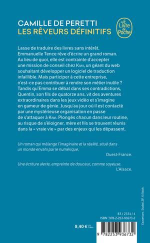 Lasse de traduire des livres sans intérêt, Emmanuelle Tence rêve d’écrire un grand roman. Au lieu de quoi, elle est contrainte d’accepter une mission de conseil chez KIWI, un géant du web souhaitant développer un logiciel de traduction infaillible. Mais participer à cette entreprise, n’est-ce pas contribuer à rendre son métier inutile ? Tandis qu’Emma se débat dans ses contradictions, Quentin, son fils de quatorze ans, vit des aventures extraordinaires dans les jeux vidéo et s’imagine en gameur de génie. Jusqu’au jour où il est contacté par une mystérieuse organisation en passe de s’attaquer à KIWI. Plongés chacun dans leur routine, au risque de s’éloigner, mère et fils se trouvent réunis dans la « vraie vie » par des enjeux qui les dépassent.