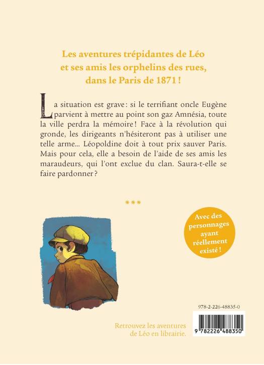 La situation est grave : si le terrifiant oncle Eugène parvient à mettre au point son gaz Amnésia, toute la ville perdra la mémoire ! Face à la révolution qui gronde, les dirigeants n'hésiteront pas à utiliser une telle arme... Léopoldine doit à tout prix sauver Paris. Mais pour cela, elle a besoin de l'aide de ses amis les maraudeurs, qui l'ont exclue du clan. Saura-t-elle se faire pardonner ?
