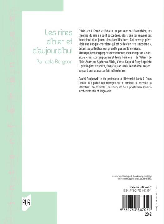 Alors que Bergson perpétue avec succès une conception «classique», ses contemporains et leurs héritiers de – de Villiers de l’Isle-Adam ou Alphonse Allais, à Yves Klein et Boby Lapointe – privilégient l’insolite, l’ineptie, l’absurde, le sublime, en provoquant un malaise parfois mêlé d’effroi.