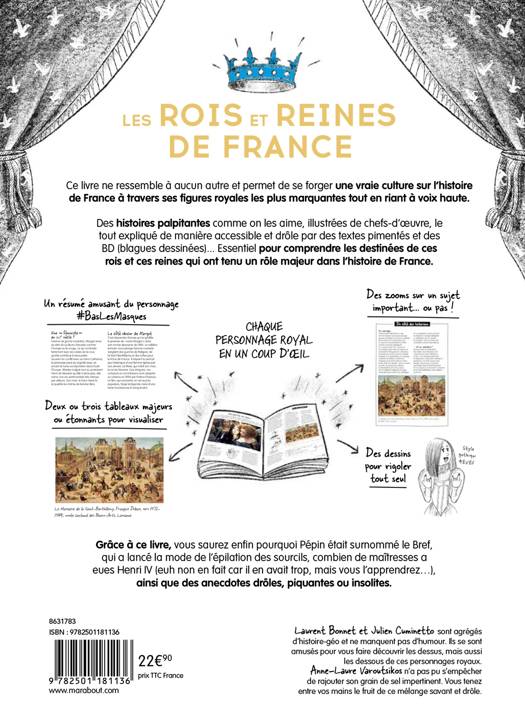 Des histoires palpitantes comme on les aime, illustrées de chefs-d'œuvre, le tout expliqué de manière accessible et drôle par des textes pimentés et des BD (blagues dessinées)... Essentiel pour comprendre les destinées de ces rois et ces reines qui ont tenu un rôle majeur dans l’histoire de France.