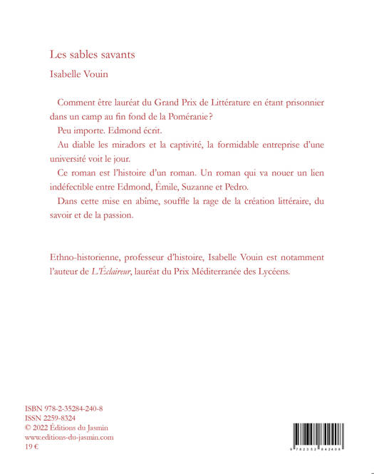 Comment être lauréat du Grand Prix de Littérature en étant prisonnier dans un camp au fin fond de la Poméranie ? Peu importe. Edmond écrit. Au diable les miradors et la captivité, la formidable entreprise d’une université voit le jour. Ce roman est l’histoire d’un roman. Un roman qui va nouer un lien indéfectible entre Edmond, Émile, Suzanne et Pedro. Dans cette mise en abîme, souffle la rage de la création littéraire, du savoir et de la passion.