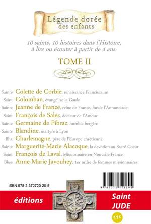 Sainte Colette de Corbie, renaissance Françiscaine Saint Colomban, évangélise la Gaule Sainte Jeanne de France, reine de France, fonde l'Annonciade Saint François de Sales, docteur de l'Amour Sainte Germaine de Pibrac, humble bergère Sainte Blandine, martyre à Lyon Bhx Charlemagne, père de l'Europe chrétienne Sainte Marguerite-Marie Alacoque, la dévotion au Sacré-Coeur Saint François de Laval, Missionnaire en Nouvelle-France Bhse Anne-Marie Javouhey, 1er ordre de femmes missionnaires