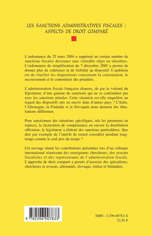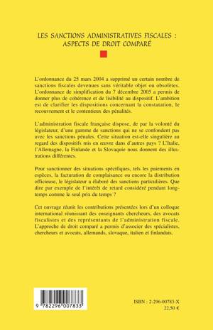 L'administration fiscale française dispose d'une gamme de sanctions qui ne se confondent pas avec les sanctions pénales. Cette situation est-elle singulière au regard des dispositifs mis en oeuvre dans d'autres pays ? L'Italie, l'Allemagne, la Finlande et la Slovaquie nous donnent des illustrations différentes. Cet ouvrage clarifie, depuis l'ordonnance du 25 mars 2004 et de celle de simplification du 7 décembre 2005, les dispositions concernant la constatation, le recouvrement et le contentieux des pénalités.