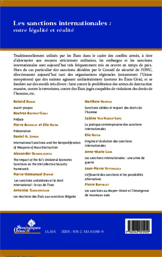 Traditionnellement utilisés par les Etats dans le cadre des conflits armés, à titre d'alternative aux moyens strictement militaires, les embargos et les sanctions internationales sont aujourd'hui très fréquemment mis en oeuvre en temps de paix. Hors du cas particulier des sanctions décidées par le Conseil de sécurité de l'ONU, elles émanent aujourd'hui tant des organisations régionales (comme l'Union Européenne) que des nations agissant unilatéralement (comme les Etats-Unis), et se fondent sur des motifs très divers.