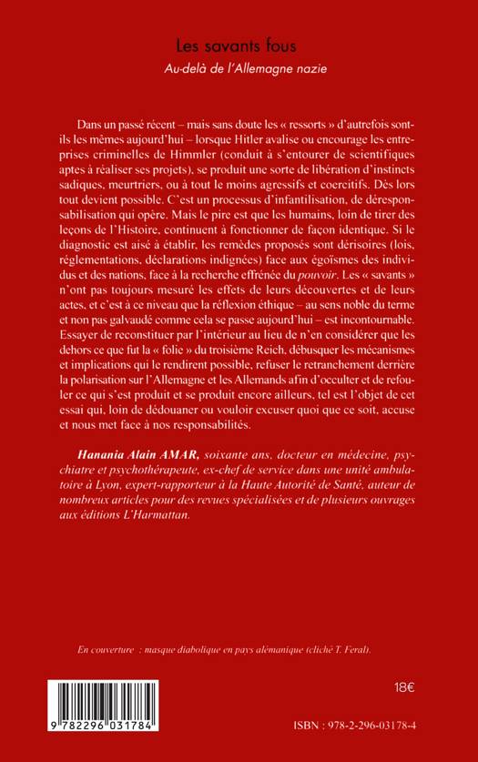 Essayer de reconstituer par l'intérieur ce que fut la "folie" du IIIe Reich, débusquer les mécanismes et les implications qui le rendirent possible, refuser le retranchement derrière la polarisation sur l'Allemagne et les Allemands afin d'occulter et de refouler ce qui s'est produit et se produit encore ailleurs, tel est l'objet de cet essai qui nous met face à nos responsabilités.