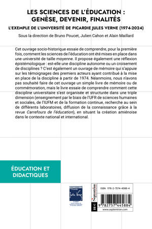 Cet ouvrage socio-historique essaie, pour la première fois, de comprendre comment dans une université de taille moyenne, les sciences de l’éducation ont formé des étudiants et produits des recherches reconnues. Mais c’est aussi un livre qui engage une réflexion sur la question de la discipline des sciences de l’éducation : est-elle une discipline autonome ou un croisement de disciplines ? Epistémologie et socio-histoire d’une discipline dans les Hauts-de-France sont ainsi l’objet de ce livre.