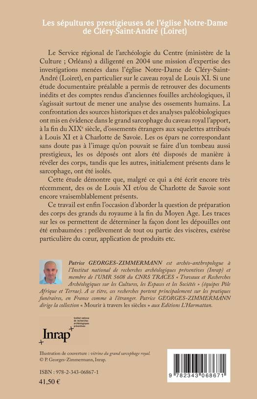 Le Service régional de l'archéologie du Centre a diligenté en 2004 une mission d'expertise des investigations menées dans l'église Notre-Dame de Cléry-Saint-André (Loiret). Il s'agissait surtout de mener une analyse des ossements humains. Cette étude démontre que, malgré ce qui a été écrit, des os de Louis XI et/ou de Charlotte de Savoie sont encore présents. Les traces sur les os permettent de déterminer la façon dont les dépouilles ont été embaumées.