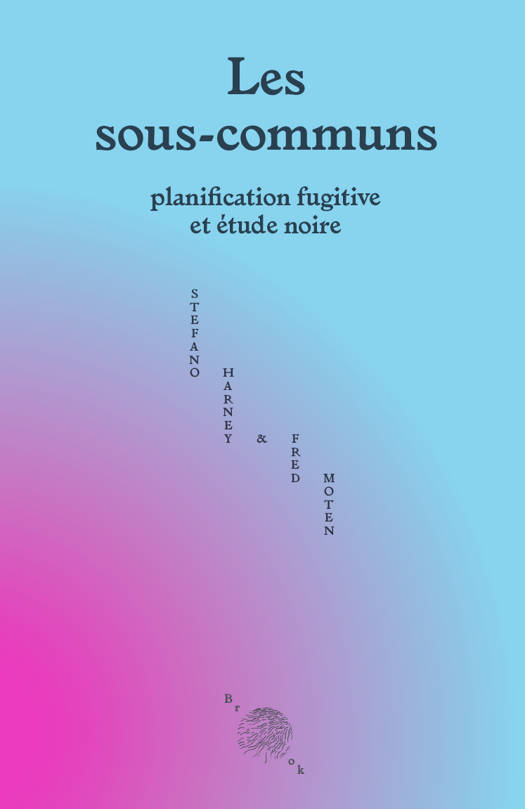 Les sous-communs est une série d'essais publiée en 2013 par deux amis, Stefano Harney et Fred Moten. Les auteurs y proposent une critique du capitalisme racial et de ses outils, ainsi que des modes d'expérimentation sociale en résistance au colonial. La recherche passe par l'étude et se déroule bien au-delà de l'université, au travail, lors d'une pause cigarette, en famille, autour d'un repas, à la lisière de la lutte et de la fuite, à l'intérieur d'un mouvement de tremblement des fondations impérialistes, d'un mouvement de refus des termes du combat tel qu'il est imposé, vers la construction d'un espace social et politique en perpétuel déplacement. Le lieu et l'être sous-communs relèvent de l'incertitude de la création collective, de l'habitation par l'échange, de l'improvisation comme critique. Les sous-communs s'écrit dans le sillage de la tradition radicale noire de manière à la fois théorique et poétique, auprès d'auteurices comme Cedric Robinson, Saidiya Hartman, Édouard Glissant ou Frantz Fanon. Cette édition, accompagnée d'une préface de Jack Halberstam, est le fruit d'un travail collectif de traduction mené lors d'ateliers durant un peu plus de deux ans.