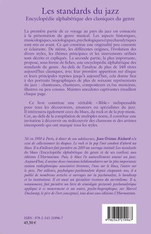 Ce livre constitue une véritable «Bible» indispensable pour tous les découvreurs, amateurs ou spécialistes du jazz. L'introduction met en avant les aspects historiques, musicologiques, sociologiques, psychologiques et psychanalytiques de ce genre musical, ce qui constitue une originalité peu courante et éclairante. La seconde partie, la plus importante, propose, sous forme de fiches, une encyclopédie alphabétique des standards du genre. Au-delà de l'analyse de plus de 140 titres aujourd'hui classiques, avec leur première apparition sur disque et leurs principales reprises jusqu'à aujourd'hui, cela donne lieu à des portraits biographiques de plus de soixante représentants du jazz : chanteuses, chanteurs, compositeurs et/ou musiciens, illustres ou peu connus.