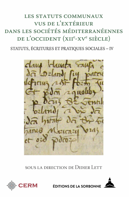 Ce volume est le quatrième d’une série d’ouvrages portant sur « Statuts, écritures et pratiques sociales dans les sociétés de la Méditerranée occidentale à la fin du Moyen Âge (XIIe-XVe siècle) », visant à étudier les statuts communaux dans une optique d’histoire sociale, non pas comme une source « normative » mais comme une source de la pratique, de leur matérialité et de leur forme d’écriture aux pratiques sociales en passant par les conditions de leur production et de conservation, leur inscription dans un paysage documentaire communal, leur structure et leur contenu. Ce dernier ouvrage s’intéresse aux statuts « vus de l’extérieur » c’est-à-dire au rapport entre le texte statutaire et sa mise en jeu dans des pratiques sociales concrètes, mais aussi à la manière dont les acteurs médiévaux se posent la question de l’usage de la norme, aux divers moments documentaires où ils font référence ou allèguent explicitement les statuts dans leurs pratiques. Il n’est donc question de statuts qu’à travers d’autres documents, qu’ils fassent partie du paysage documentaire communal (délibérations communales, registres de justice, registres de compte, criées, épigraphie, iconographie, etc.) ou qu’ils soient élaborés en marge des écrits de gouvernement (registres notariés, testaments, récits de miracles, procès de canonisation, sources narratives, chroniques, etc.). Le but est de repérer, d’analyser et d’étudier la manière dont les normes statutaires se sont diffusées – ou pas –, ont été appliquées – ou pas – dans les pratiques politiques, économiques et sociales de la commune : comment ont-elles été validées, reproduites, conservées, diffusées ? C’est l’occasion de mesurer la force pratique des statuts, leurs effets dans la vie quotidienne du gouvernement et des acteurs sociaux, de prouver ainsi la pertinence de la confrontation entre divers éléments textuels produits par la commune pour élaborer une histoire des pratiques sociales à partir des pratiques d’écriture dans les sociétés de la Méditerranée occidentale à la fin du Moyen Âge (XIIe-XVe siècle).
