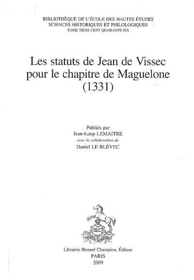 Lors du chapitre général de la Toussaint 1331, l'évêque de Maguelone Jean de Vissec promulgue des statuts pour son chapitre cathédral. Une copie en forme de codex, avec capitules, fut réalisée en 1333 tandis qu'une autre fut insérée peu après dans le cartulaire du chapitre cathédral. Ces statuts donnent une représentation de la vie quotidienne de cette communauté canoniale insulaire méridionale.