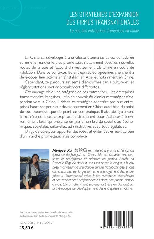 La Chine se développe à une vitesse étonnante et est considérée comme le marché le plus prometteur, notamment avec les nouvelles routes de la soie et l'accord d'investissement UE-Chine en cours de validation. Dans ce contexte, les entreprises européennes cherchent à développer leur activité en s'installant en Asie, et notamment en Chine. Cependant, ce parcours est semé d'embuches car la culture et les réglementations sont ancestralement différentes. Cet ouvrage cible une catégorie de ces entreprises - les entreprises transnationales françaises - afin de pouvoir étudier leurs stratégies d'expansion vers la Chine. Il décrit les stratégies adoptées par huit entreprises françaises pour leur développement en Chine, aussi bien du point de vue théorique que du point de vue pratique. Il aborde également la manière dont ces entreprises se structurent pour s'adapter à l'environnement local qui présente un grand nombre de spécificités économiques, sociétales, culturelles, administratives et surtout législatives.