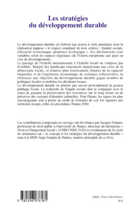 Le développement durable, notion à visée planétaire, suppose "le respect simultané de trois critères : finalité sociale, efficacité économique, prudence écologique". Le passage de l'échelle internationale à l'échelle locale ne s'impose pas d'emblée. Malgré des handicaps structurels manifestant une crise de la démocratie locale, la référence aux objectifs du développement durable gagne nombre de politiques locales et mobilise des décideurs locaux.