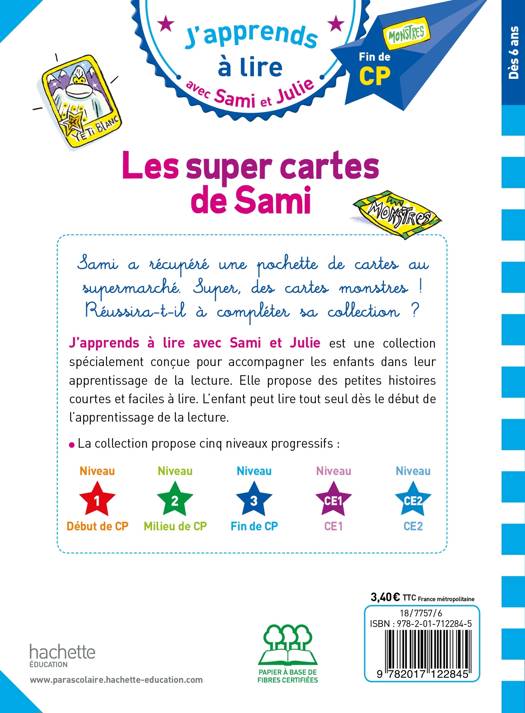 « J’apprends à lire avec Sami et Julie » est une collection de petites histoires spécialement conçue pour les enfants apprenant à lire. Le texte est écrit en gros, les mots sont bien détachés les uns des autres et les lignes bien espacées. Les histoires sont courtes, drôles et très faciles à lire. Écrites avec des mots en adéquation avec leur progression, une quantité de texte à lire réduite et adaptée, pour que l’enfant reste motivé et prenne confiance.
