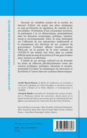 Devenus de véritables acteurs de la société, les lanceurs d’alerte ont acquis une place stratégique en tant qu’éléments de régulation, de contrôle et de surveillance. Promoteurs d’une citoyenneté novatrice, ils participent à la vie démocratique, principalement dans les domaines économique, politique, sanitaire, social et environnemental. Ainsi, ils nous interrogent sur l’efficacité de nos mécanismes traditionnels et la transparence des décisions de nos systèmes de gouvernance. Certaines affaires récentes comme WikiLeaks ou la gestion de la crise sanitaire du COVID-19 ont montré leur force dans ce combat difficile mené au nom de la justice et d’une gouvernance juste, inclusive et efficience. Cet ouvrage formule des pistes de réflexion pluridisciplinaires issues des sciences juridiques, politiques, humaines et sociales, permettant d’évaluer les dynamiques de rénovation et de réforme à l’œuvre dans nos systèmes démocratiques.