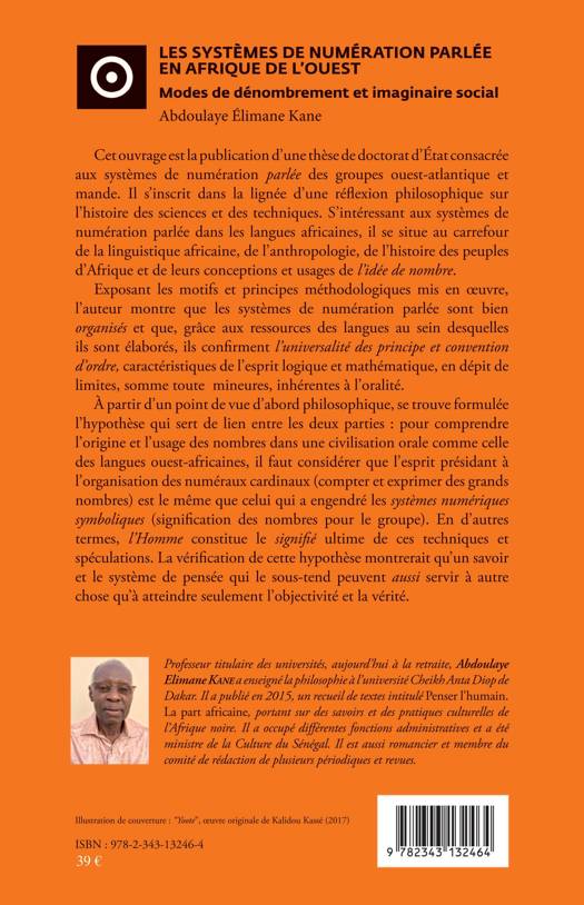 Cet ouvrage consacré aux systèmes de numérotation parlée des groupes ouest-atlantique et mande s'inscrit dans la lignée d'une réflexion philosophique sur l'histoire des sciences et techniques. S'intéressant aux systèmes de numérotation parlée dans les langues africaines, il se situe au carrefour de la linguistique africaine, de l'anthropologie, de l'histoire des peuples d'Afrique et de leurs conceptions et usages de l'idée de nombre.