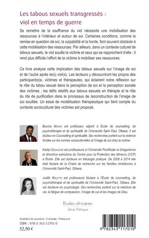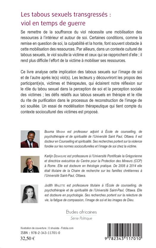 Se remettre de la souffrance du viol nécessite une mobilisation des ressources à l'intérieur et autour de soi. Certaines conditions, comme la remise en question de soi, la culpabilité et la honte, y font souvent obstacle. Ce livre analyse cette implication des tabous sexuels sur l'image de soi et de l'autre après le(s) viol(s). Les propos des victimes et thérapeutes éclairent la réflexion sur le rôle du tabou sexuel dans la perception de soi et la perception sociale des victimes. Un essai de modélisation thérapeutique qui tient compte du contexte socioculturel des victimes est proposé.