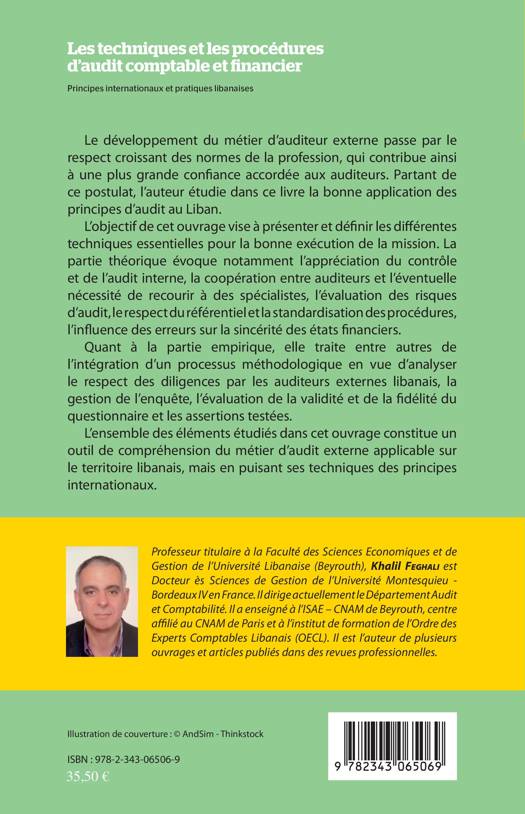 L'auteur étudie ici la bonne application des principes d'audit au Liban. L'objectif de cet ouvrage vise à présenter et définir les différentes techniques essentielles pour la bonne exécution de la mission d'auditeur. La partie théorique évoque notamment l'appréciation du contrôle et de l'audit interne, la coopération entre auditeurs et l'éventuelle nécessité de recourir à des spécialistes ; la partie empirique traite entre autres de l'intégration d'un processus méthodologique en vue d'analyser le respect des diligences par les auditeurs externes libanais et la gestion de l'enquête.