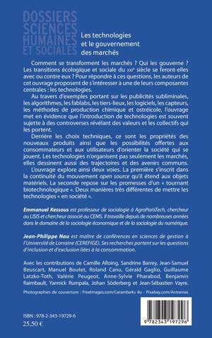 Comment se transforment les marchés ? Qui les gouverne ? Les transitions écologique et sociale se feront-elles avec ou contre eux ? Cet ouvrage aborde leurs composantes centrales : les technologies. Au travers d'exemples portant sur les publicités subliminales, les algorithmes, les fablabs, les tiers-lieux ou les logiciels, il met en évidence que les controverses autour des technologies révèlent les valeurs et les collectifs qui les portent. Derrière les choix techniques, ce sont les propriétés des nouveaux produits et les possibilités offertes d'orienter la société qui se jouent. Les technologies n'organisent pas seulement les marchés, elles dessinent des trajectoires et des avenirs communs. Deux voies sont explorées : le mouvement open source et le « tournant biotechnologique ».
