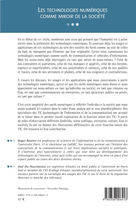 A travers les discours, les usages et les applications que nous construisons à partir des technologies numériques, qu'est-ce que les outils numériques nous disent et nous apprennent sur nous-mêmes en tant qu'individus ou société, en tant que citoyens ou Etat, en tant que consommateurs ou entreprises, en tant qu'acteurs publics ou privés, en tant que culture ? C'est cette propriété des outils numériques à réfléchir l'individu et la société qui est explorée ici de façon pluridisciplinaire.