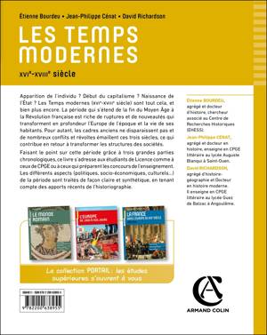 De la Renaissance aux Lumières, la trajectoire historique semble rectiligne. Pourtant, l’Europe moderne est agitée par nombre de conflits, guerres de Religion, révoltes... Faisant le point sur cette période grâce à trois grandes parties chronologiques, ce livre s’adresse aux étudiants de L1 comme à ceux de CPGE ou à ceux qui préparent les concours de l’enseignement. Les différents aspects (politiques, socio-économiques, culturels…) de la période sont traités de façon claire et synthétique, en tenant compte des apports récents de l’historiographie.