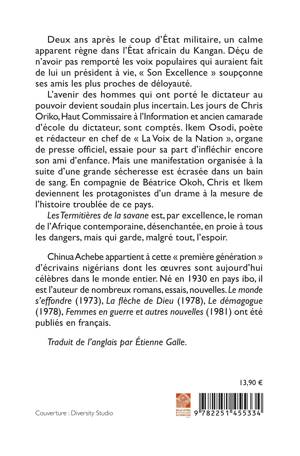 Les termitières de la savane est, par excellence, le roman de l’Afrique contemporaine, désenchantée, en proie à tous les dangers, mais qui garde, malgré tout, l’espoir.