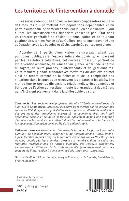 L'ouvrage est le fruit d'une recherche franco-québécoise conduite selon le principe du regard croisé. Il offre une plongée multiscalaire dans l'univers des services de soutien à domicile à travers un processus analytique qui va des politiques publiques jusqu'aux dimensions relationnelles, émotionnelles et éthiques de l'intervention. L'ouvrage en trois entrées (macro, méso, micro) permet ainsi d'analyser les contraintes et paradoxes induits par la Nouvelle gestion publique dans l'organisation des services, tout en dévoilant les espaces d'initiatives et d'engagements citoyens et professionnels supports à l'expression d'un travail du care.