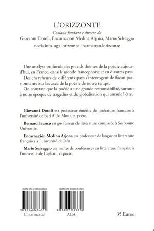 Parler poésie c'est parler le monde. Encore plus à notre époque de guerre et de globalisation annulant et englobant les identités humaines. Ce livre traite un sujet n'ayant pas de limites. C'est un texte ouvert, comme la poésie elle-même, où à travers l'uvre de tant de poètes, français, francophones, iraniens, espagnols, tunisiens, dans une trentaine de textes, dont les auteurs sont de différents pays, on voit la poésie de notre temps comme une porte ouverte sur les grands problèmes de notre époque. Ainsi, les thèmes de la poésie se révèlent dans leur profondeur, autour de quelques catégories essentielles : « habiter, figurer, décanter, articuler » (Béatrice Bonhomme) et d'autres encore, sur le chemin du dialogue. C'est une poésie de l'action, « assumant un rôle dans la Cité, contrairement aux préjugés platoniciens » (Id.). La poésie se fait acte concret. Le poète fait entendre sa voix à l'univers : il faut l'écouter. La poésie contemporaine interroge le monde, dans ses douleurs et dans ses envols. Une analyse profonde des grands thèmes de la poésie aujourd'hui, en France, dans le monde francophone et en d'autres pays. Des chercheurs de différents pays s'interrogent de façon passionnante sur les axes de la poésie de notre temps. On constate que la poésie a une grande responsabilité, surtout à notre époque de tragédies et de globalisation qui annule l'être.