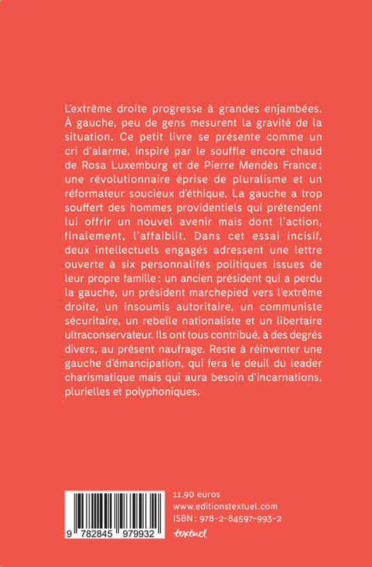 D'Hollande à Macron en passant par Mélenchon, Roussel, Ruffin ou Onfray, autant de lettres ouvertes adressées par les deux auteurs à un ancien président qui a perdu la gauche, à un président marchepied vers l'extrême-droite, à un insoumis autoritaire, à un communiste sécuritaire, à un rebelle nationaliste, à un libertaire ultraconservateur. Un coup de gueule salutaire adressé à une gauche rongée par des guerres intestines au moment où l'extrême droite arrive aux portes du pouvoir.