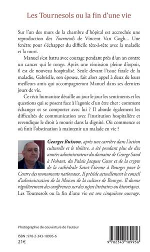 Sur l'un des murs de la chambre d'hôpital est accrochée une reproduction des Tournesols de Vincent Van Gogh... Une fenêtre pour s'échapper du di cile tête-à-tête avec la maladie et la mort. Manuel s'est battu avec courage pendant près d'un an contre un cancer qui le ronge. Après une rémission pleine d'espoir, il est de nouveau hospitalisé. Seule devant l'issue fatale de la maladie, Gabrielle, son épouse, fait alors appel à deux de leurs meilleurs amis qui accompagneront Manuel dans ses derniers jours de vie. Ce récit humaniste détaille au jour le jour les sentiments et les questions qui se posent face à l'agonie d'un être cher : comment échanger et se comporter avec lui ? Il aborde également les difficultés de communication avec l'institution hospitalière et revendique le droit à mourir dans la dignité. Où commence et où finit l'obstination à maintenir un malade en vie ?