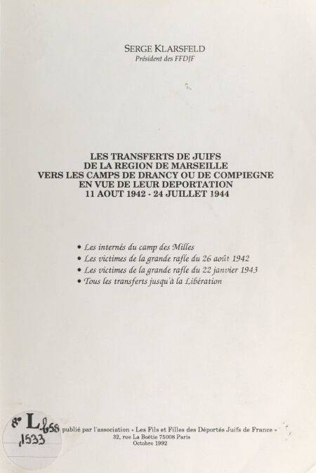 Les transferts de Juifs de la région de Marseille vers les camps de Drancy ou de Compiègne en vue de leur déportation, 11 août 1942-24 juillet 1944
