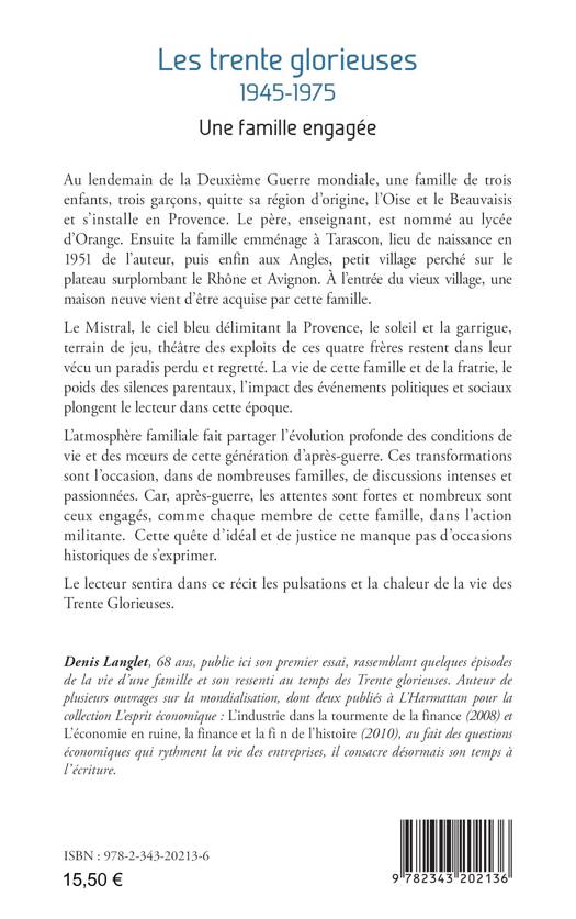 Au lendemain de la Deuxième Guerre mondiale, une famille et ses trois fils quittent sa région d’origine, le Beauvaisis et s’installe en Provence. La vie de cette famille et de la fratrie, le poids des silences parentaux, l’impact des événements politiques et sociaux plongent le lecteur dans cette époque. L’atmosphère familiale et militante fait partager l’évolution profonde des conditions de vie et des moeurs de cette génération d’après-guerre dans laquelle les attentes sont fortes. Cette quête d’idéal et de justice ne manque pas d’occasions historiques de s’exprimer dans la chaleur de la vie des Trente Glorieuses.