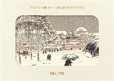 Ces 12 images sont issues de la série Les trente-six vues de la Tour Eiffel. Développée sous forme de gravures sur bois au moment de la construction de la tour Eiffel (1887-1889), finalement exécutée en lithographie en utilisant pas moins de cinq matrices, cette série d’estampes en douze couleurs tirée à 500 exemplaires sur papier vélin est achevée en 1902, soixante-dix ans exactement après son modèle révéré, les Trente-six vues du mont Fuji de Katsushika Hokusai (1760-1849). Henri Rivière (1865-1951), peintre, graveur, illustrateur et ancien directeur artistique du théâtre d’ombres du Chat noir, célèbre cabaret de Montmartre, y déploie sa passion japonisante et sa maestria technique en multipliant cadrages, angles de vue et atmosphères. La réalisation de cet élégant in-quarto oblong (235 × 290 mm) est l’œuvre conjointe de son éditeur favori, l’imprimeur Eugène Verneau (1853-1913), du graphiste et poète George Auriol (1863-1938) et du critique d’art et fondateur du Rire Arsène Alexandre (1859-1937), qui dans son prologue qualifie drôlement la tour Eiffel de « grande baguette à suspendre les kakémonos ».