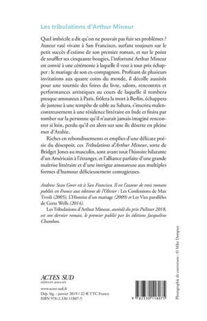 Riches en rebondissements et emplies d'une délicate poésie du désespoir, ces «Tribulations d'Arthur Mineur», sorte de Bridget Jones au masculin, sont avant tout l'histoire hilarante d'un Américain à l'étranger, et l'alliance parfaite d'une grande maîtrise littéraire et d'une intrigue amoureuse aux multiples formes d'humour délicieusement contagieuses.