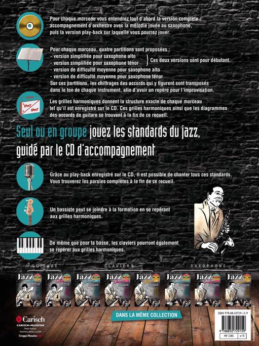Les tubes du jazz : une collection best seller depuis 1990 ! Avec des play backs de qualité enregistrés par un quartet de musiciens profesionnel, jouez seul ou en groupe les standards du jazz guidé par le CD d’accompagnement. Les partitions de ces standards mondialement connus sont proposées pour débutants et musiciens expérimentés avec deux niveaux de difficulté.