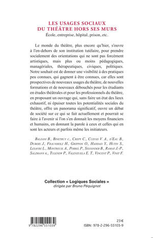 Le monde du théâtre, s'ouvre à l'en-dehors de son institution tutélaire, pour prendre socialement des orientations pédagogiques, managériales, thérapeutiques, civiques, politiques. Cet ouvrage donne une visibilité à des pratiques qui gagnent à être connues, car elles sont prospectives de nouveaux usages du théâtre, de nouvelles formations et de nouveaux débouchés pour les étudiants et pour les professionnels du théâtre.