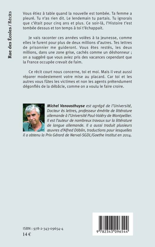Ce récit revient sur les prétendues vacances allemandes des prisonniers français en Allemagne. Incarcérés de l'autre côté de la frontière, alors que la France est occupée, ces soldats eurent durant longtemps une image de déserteurs. En les traitant de lâches et de dégonflés, la propagande vichyste a mis sous le tapis un ensemble de trajectoires et de paramètres que l'auteur de cet ouvrage s'emploie à réhabiliter.